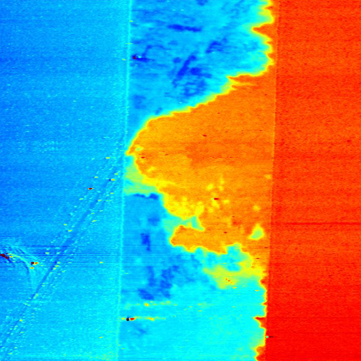 EFM is an oscillating mode. A metal tip scans the surface to record the topography. Then, the tip is over the sample and recording the offsets of the phase signal of the interactions with the gradient of electrical forces present on the surface.